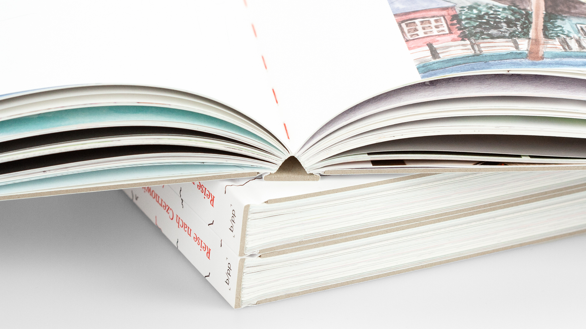 Ein besonderes Detail setzt der rote Heftfaden, der dem Buchblock eine hochwertige und zugleich lebendige Anmutung verleiht.